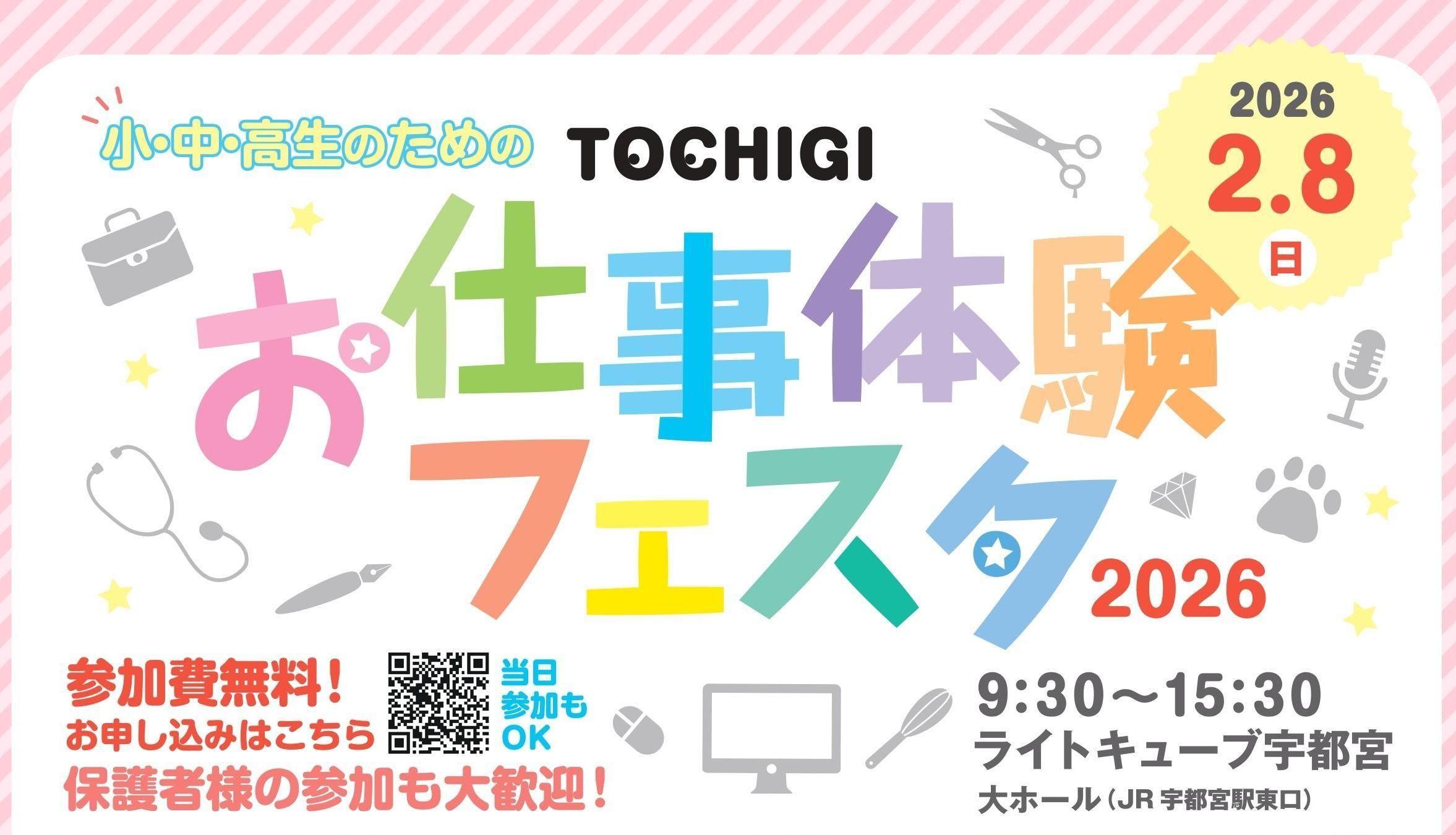 とちぎお仕事体験フェスタは、様々な仕事を体験していただくことにより、将来の夢を発見していただくことを目的に開催しました。